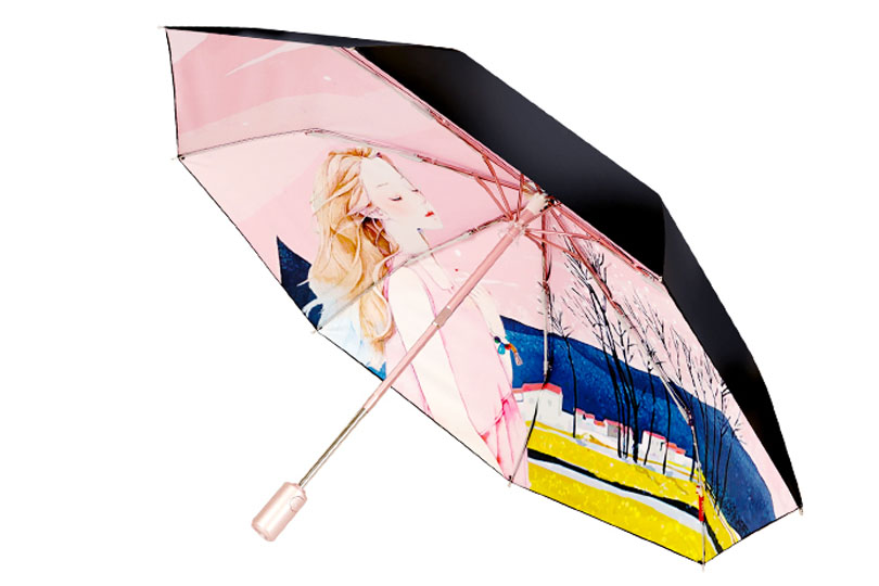 女士自开收伞